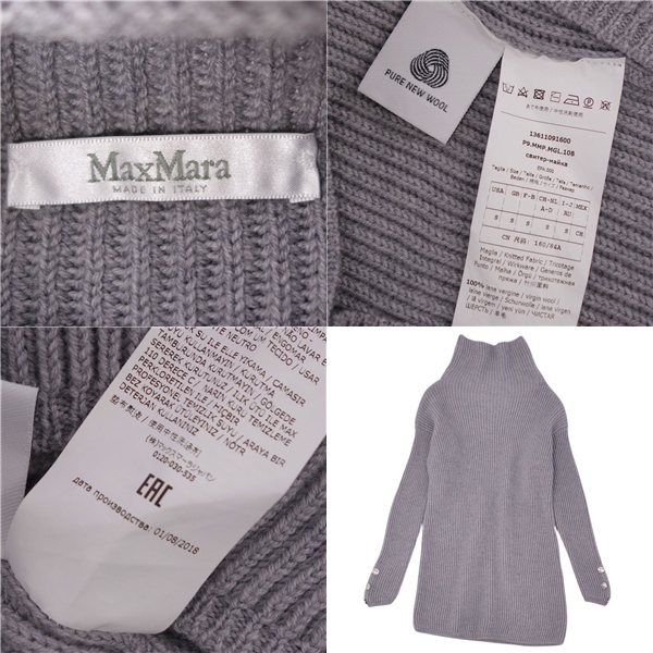 | 美品 マックスマーラ Max Mara ニット セーター ハイネック ロングスリーブ 長袖 ウール トップス レディース S グレー |