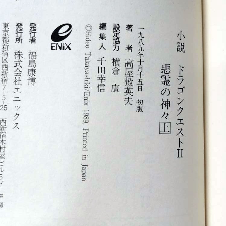 高屋敷英夫・『小説ドラゴンクエストⅡ 悪霊の神々』・上下巻セット・四六判・No.240902-23・梱包サイズ60 收藏