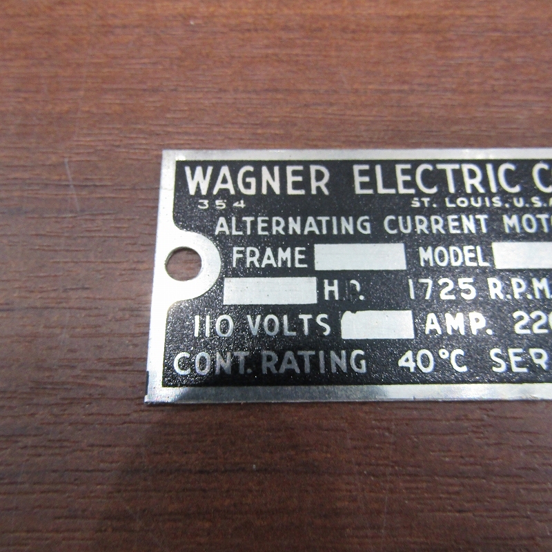 ■FK-7389 当時物 WAGNER ELECTRIC CORPORATION プレート 約7cm 20240917 收藏