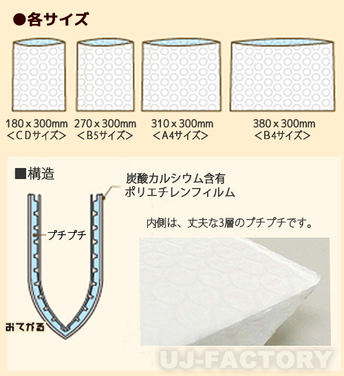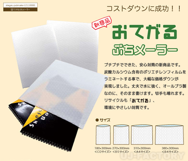 | ★ 川上産業・おてがる ぷちメーラー ★ プチプチでできた安心封筒の新製品! ★ クッション封筒(全4サイズ) ★ | ||||||||||||||||||||||