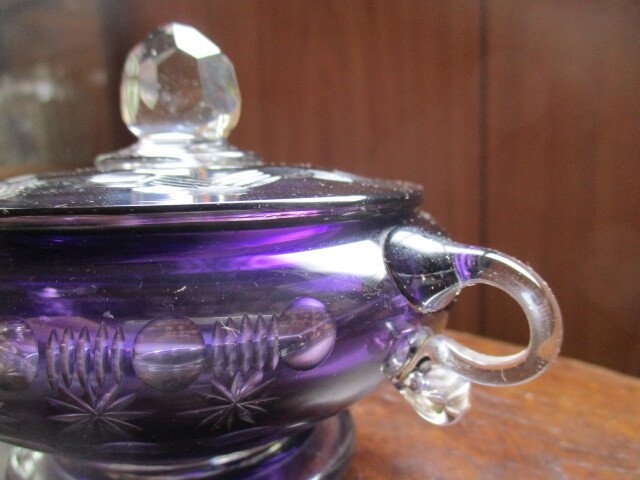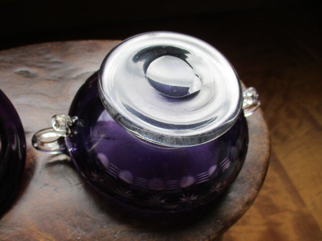 切子シュガーポット砂糖壺あめや瓶ウラン氷コップ戦前大正ロマン気泡硝子古道具レトロビンテージアンティーク 收藏