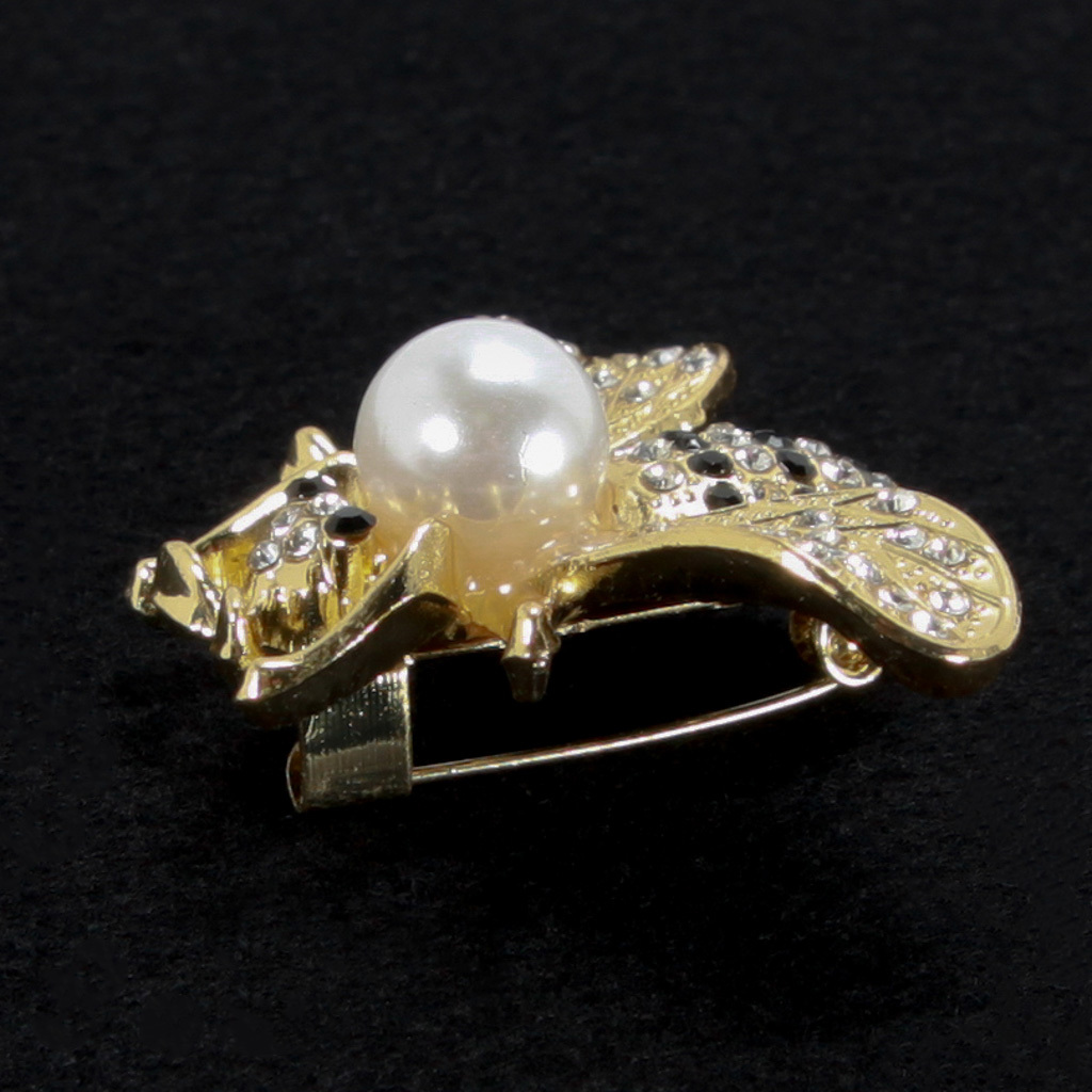 蜂とパールのブローチ ゴールドカラーの蜂とホワイトパール ラインストーン フェイクパール 新品 未使用品 收藏