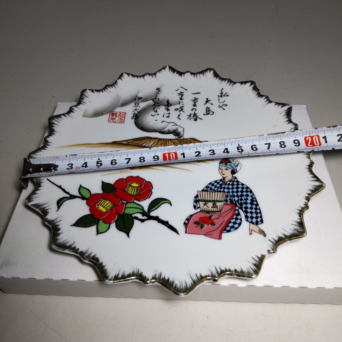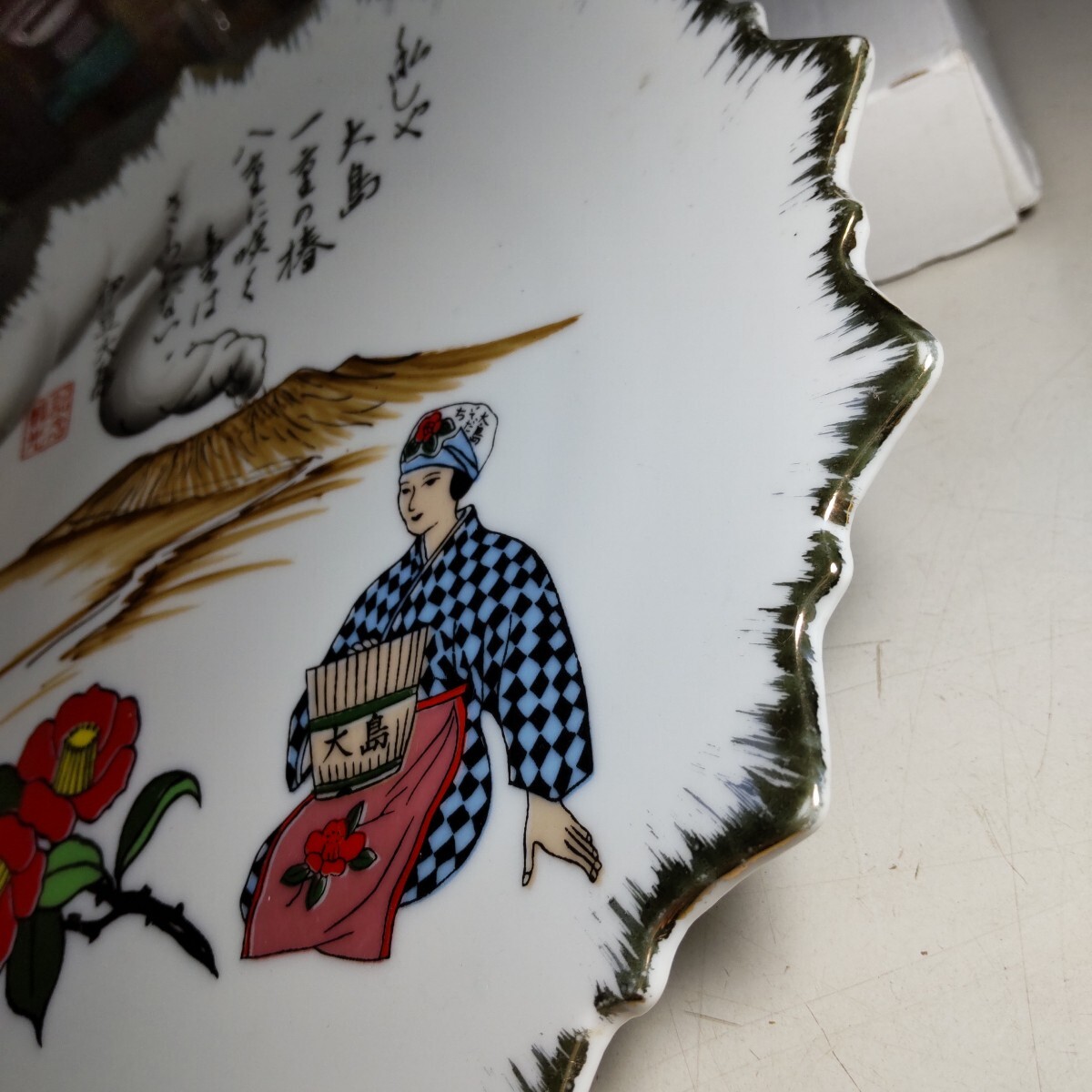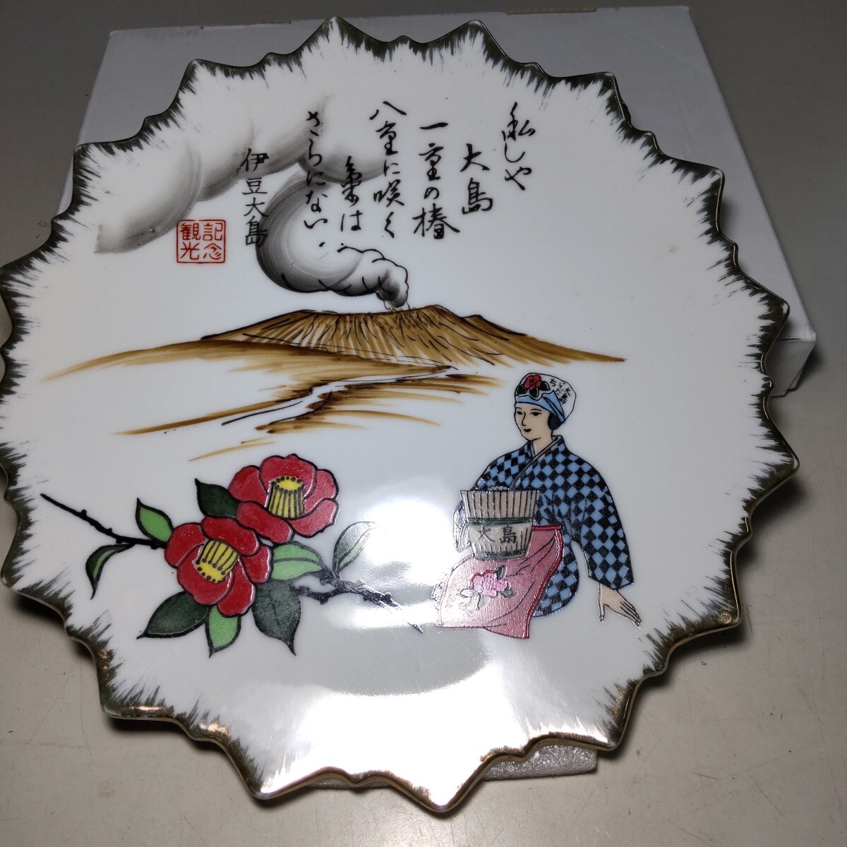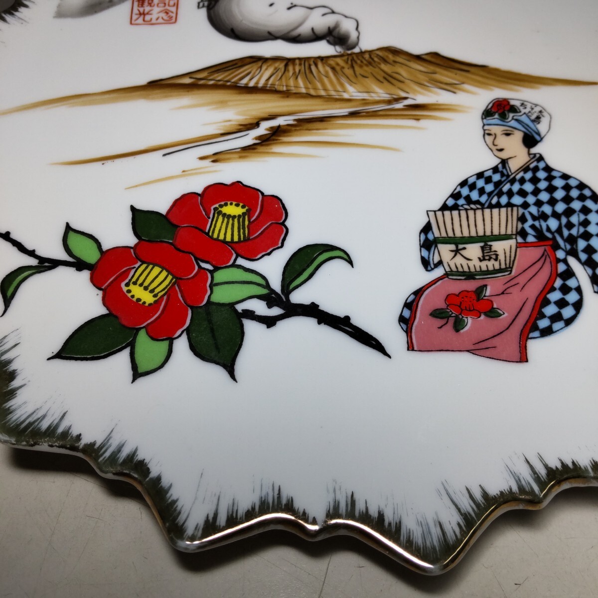 【雑貨】 希少 美品 伊豆大島 絵皿 飾り皿 プレート皿 昭和レトロ 時代物 40〜50年前の品 中型絵銭 アンティーク インテリア プレート 皿 收藏
