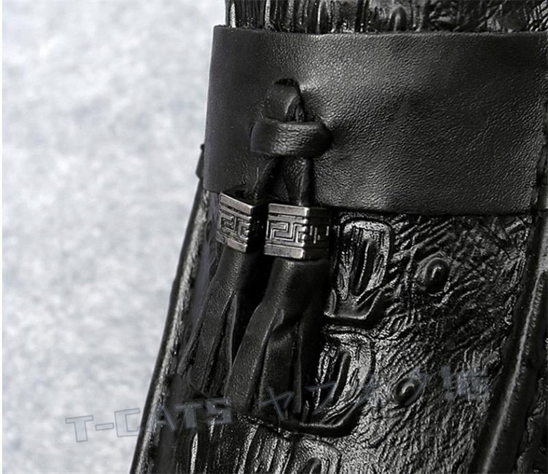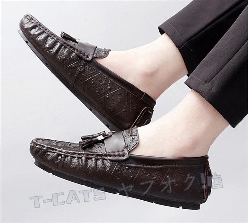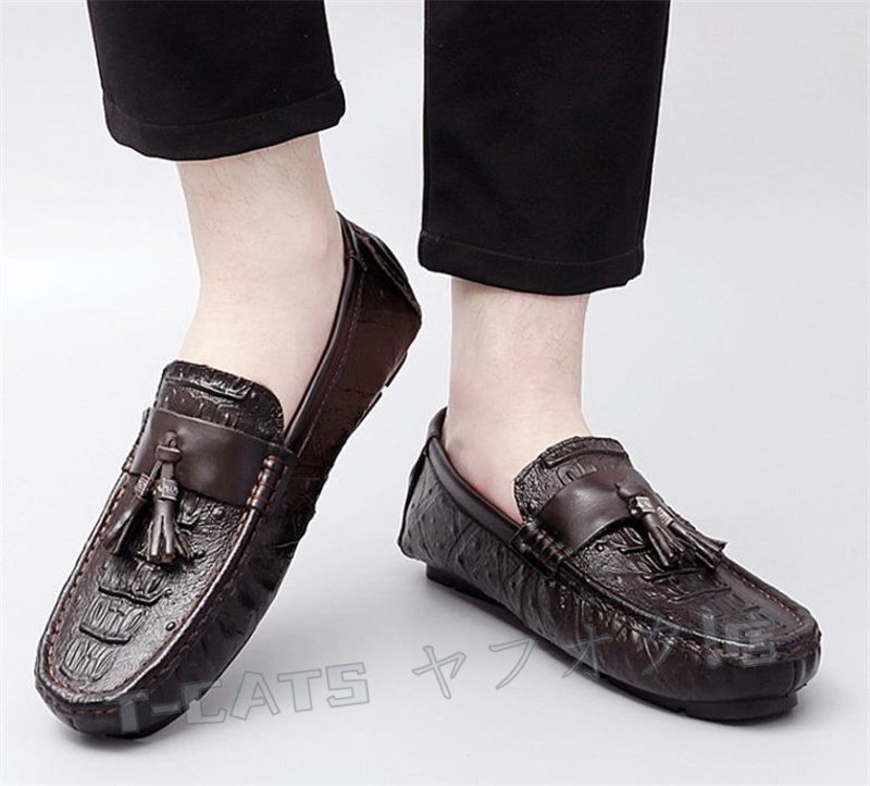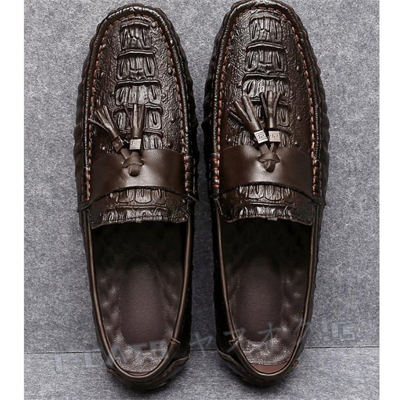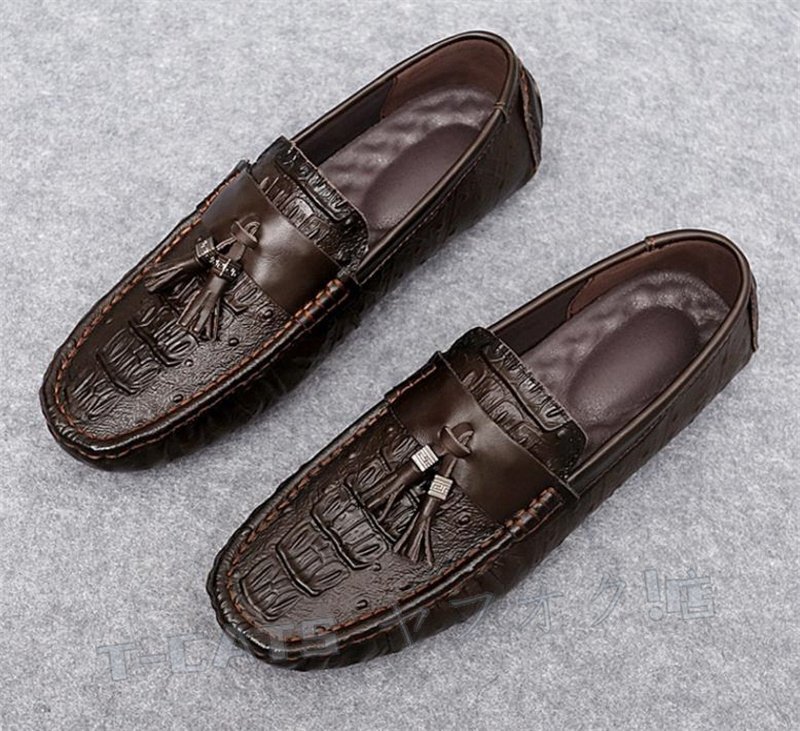 ☆新品 ローファー ドライビングシューズ スリッポン ワニ柄 タッセルローファー メンズ イギリス風 ダークブラウン 24cm 收藏