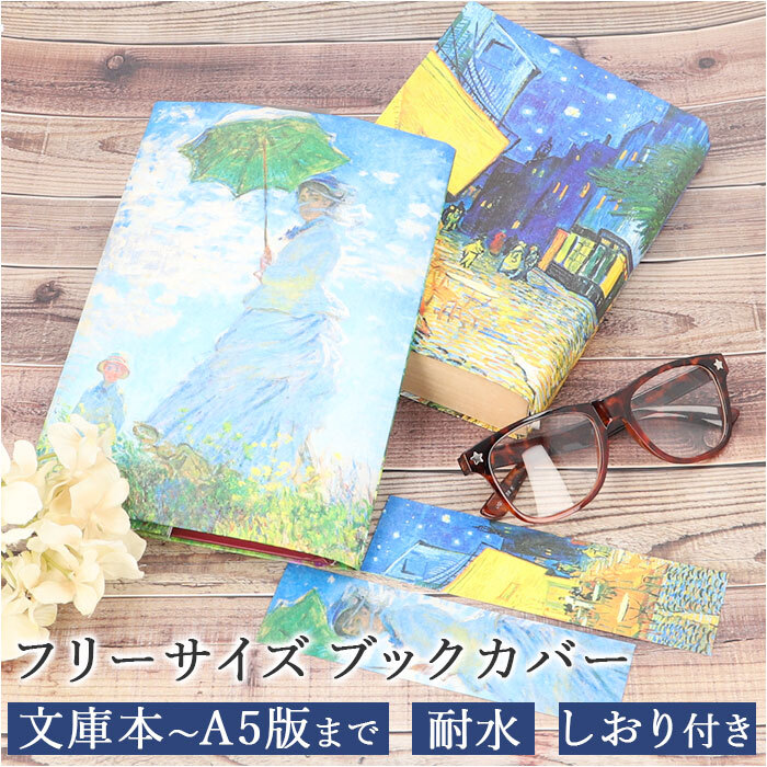 ☆ モネ/日傘をさす女 ☆ フリーサイズブックカバー フリーサイズ ブックカバー 読書カバー カバー ブック 本 サイズ調整 軽量 破れない 收藏