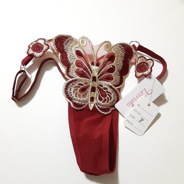 蝶柄 セクシーランジェリー パンツ Tバック レディース ワインレッド 下着 收藏
