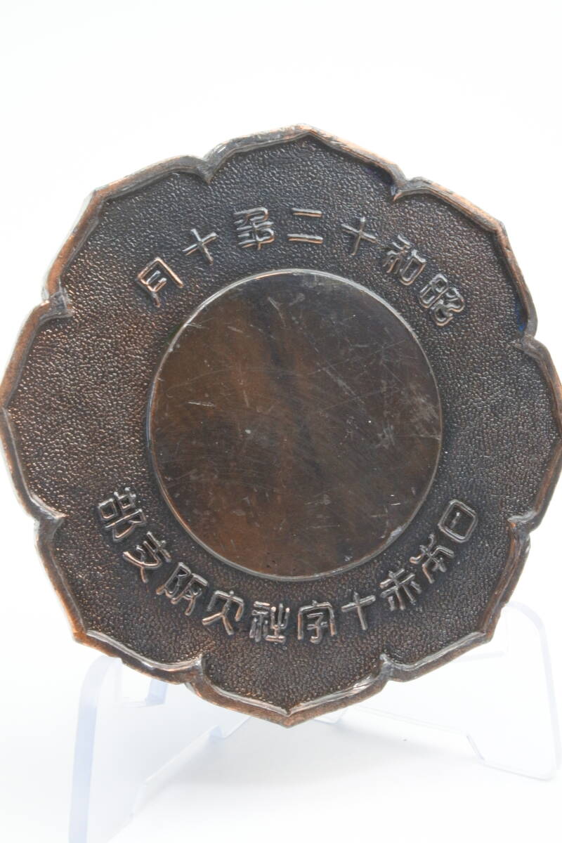 ☆☆☆日本皇族記念品 1937年(昭和12年)閑院宮殿下御視閲 日本赤十字社大阪支部 記念 銅製文鎮 極珍皇室特別記念品 收藏