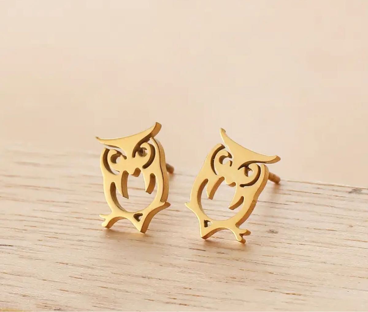 【両耳セット】フクロウデザインの金色スタッドピアス 新品未使用 ゴールドカラー アクセサリー ゴールド イヤリング ピアス 收藏