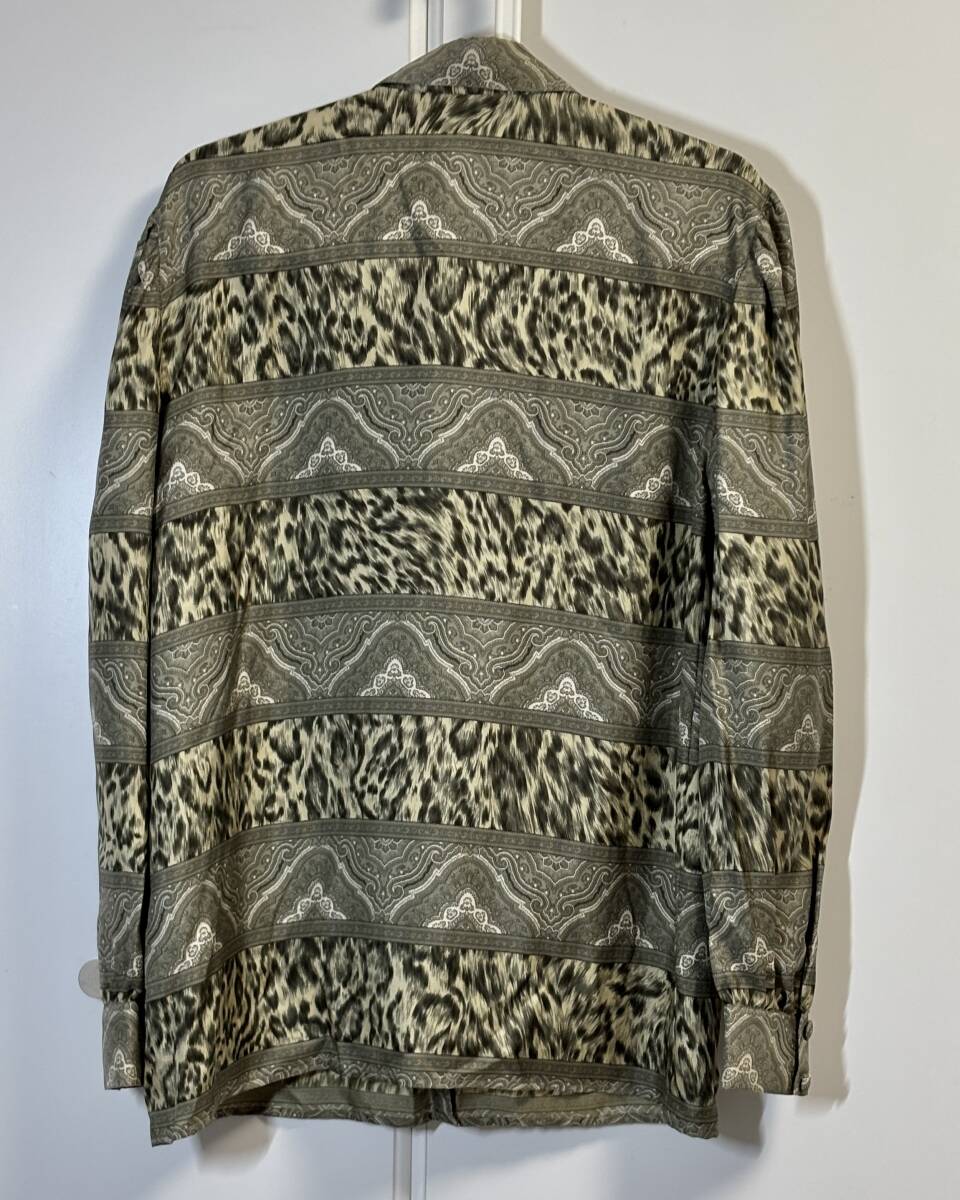 E445/絹シルク100%くすみグリーン.ペイズリー&アニマル柄 【44】Giorgio Grati美品.包みボタン 收藏
