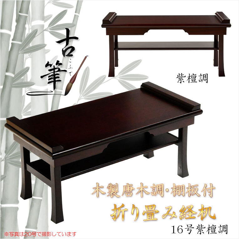 伝統型経机【木製唐木調・棚板付 折り畳み経机:古筆(こふで)ケヤキ調 16号】 收藏
