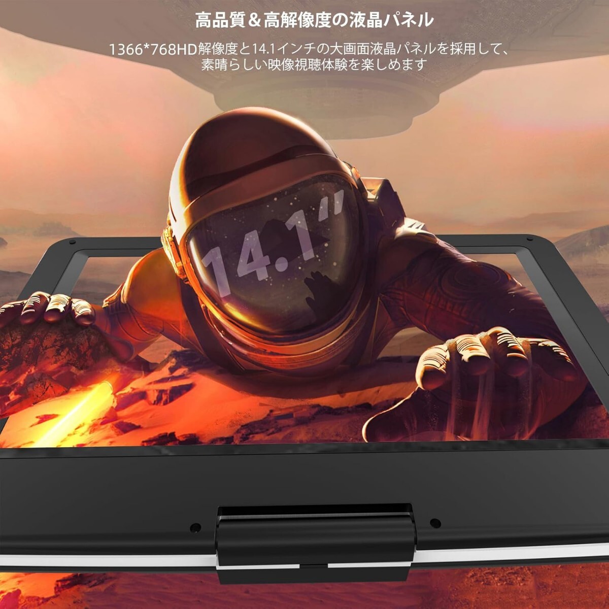 【2025強化版】 ポータブルDVDプレーヤー 15.9型 BOIFUN 14.1インチ超大画面 dvdプレーヤー ポータブル 車載用 1366*768 液晶 收藏