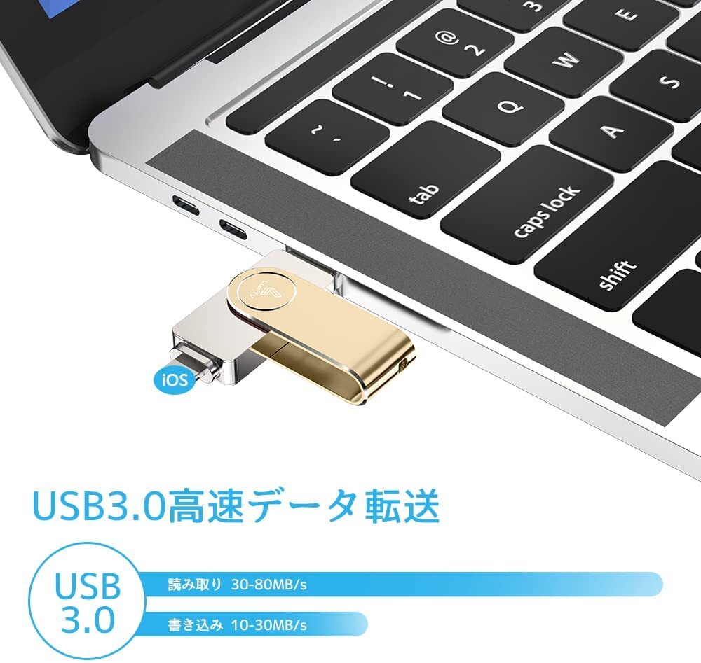 128GB USBメモリ 4in1 フラッシュドライブ PC/Andrd/IOS対応 收藏