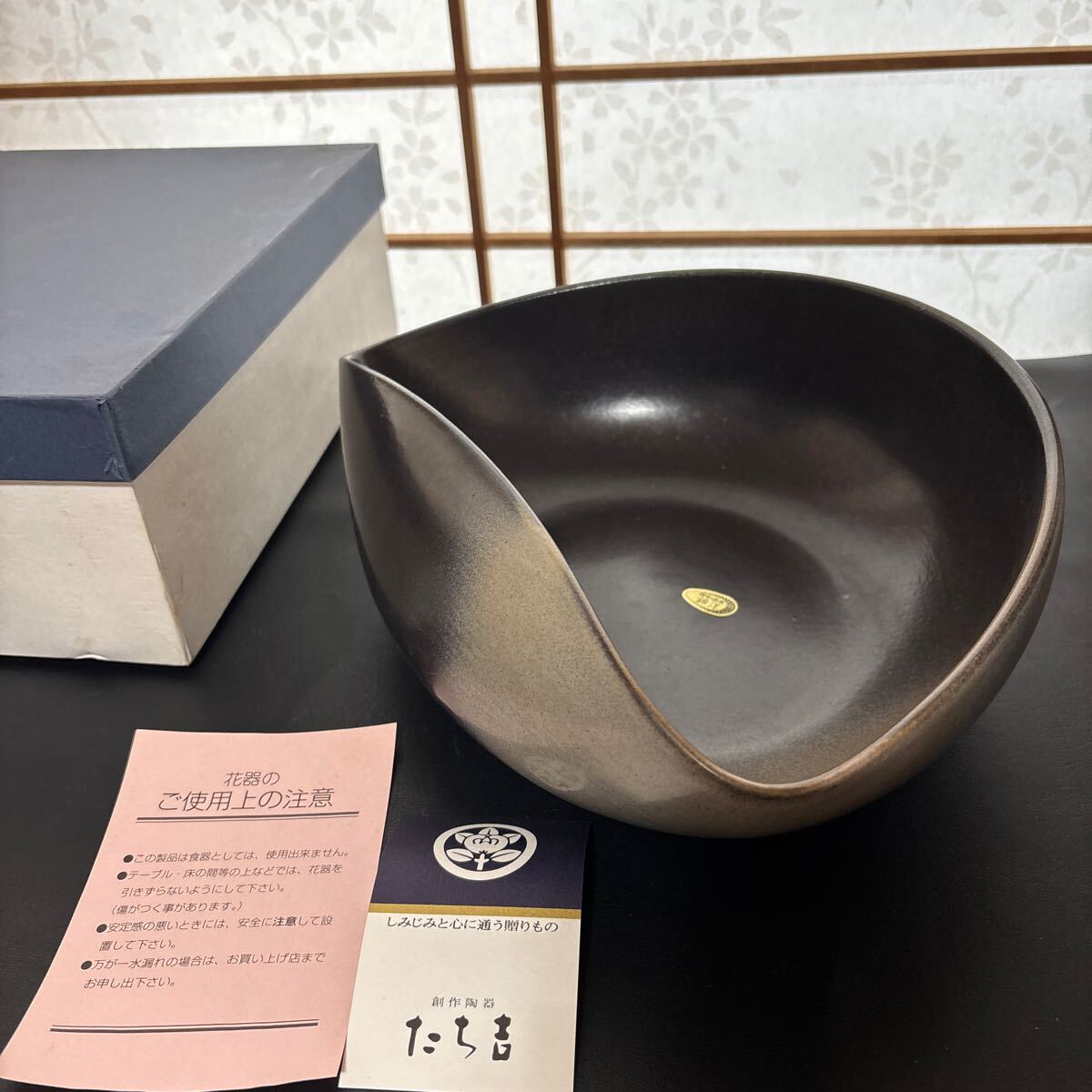 ★未使用元箱入り★ 華道具 水盤 生花 いけばな 華道鉢 花瓶 創作陶器 たち吉 花器 フラワーベース 收藏