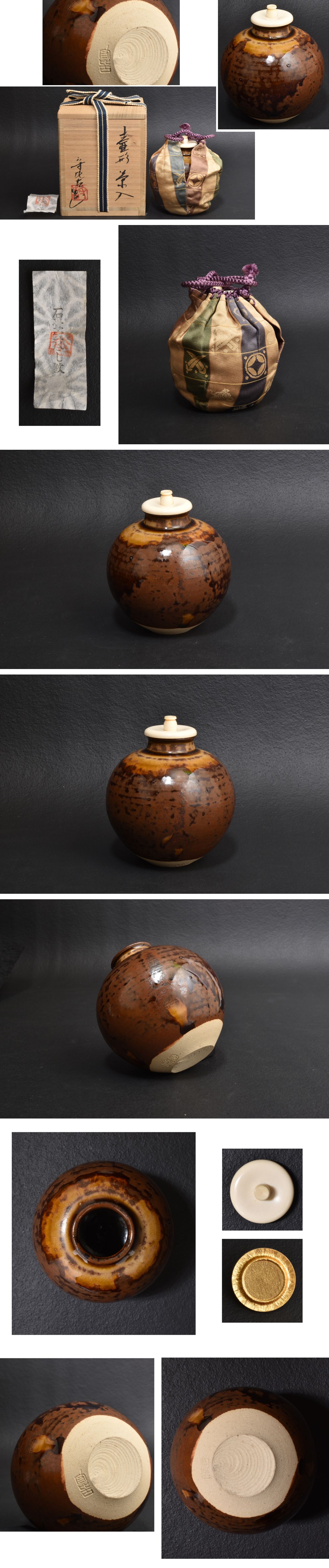 5714 福森守比古 壷形茶入 仕覆:石畳宝尽し紋 無キズ 共箱 收藏