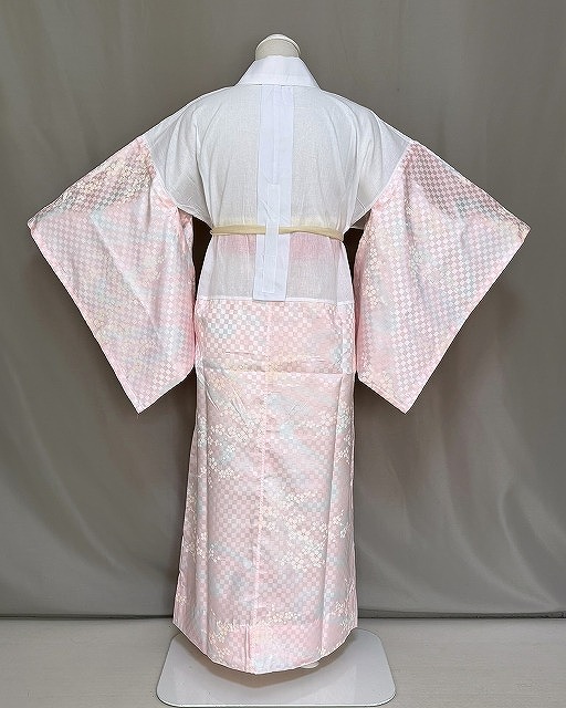 | M0202-05 河句野 豊富な経験により考案された着物プロによる仕立上りポリエステル長地伴です。 マイフィット長地伴は 上身頃が綿素材で吸汗性と保湿性に富んでいます。 活動的な動きにも着崩れしません。 衿元から衿先までスッキリ美しく衣紋抜きと付紐が付いております。 すぐに着られる半衿付きです。 ご自宅でお手入れができるポリエステル素材の仕立上り長襦袢です。 おしゃれな半衿も当ショップにございますので ぜひ お寄り下さいね♪ こちらの長地伴ですが問屋様よりの在庫処分となっております。 目立つ難は見当たりませんでしたが、ご理解の上でお求めくださるようお願いいたします。 現品限りSサイズのみとなっております。 お色などはピンク色系の市松地紋に淡い藤色系のグラディ-ションが入り小花柄があります。◎ | ||||||||||