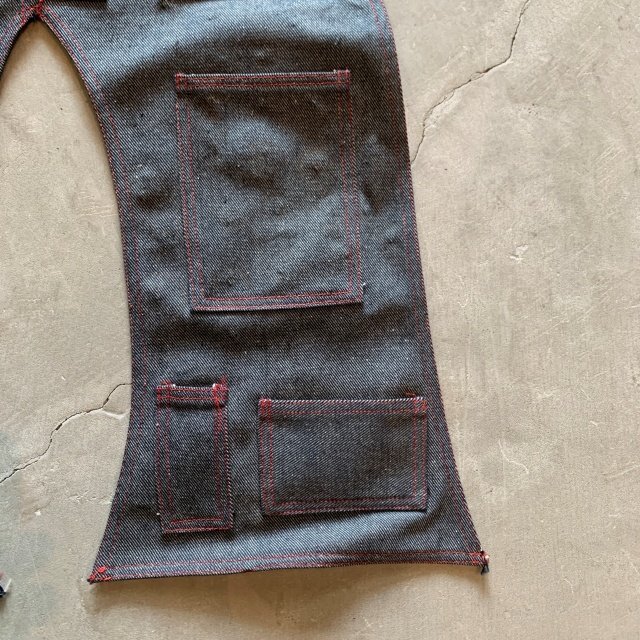 【62㎝×44㎝】ハンドメイド フレアパンツ型 デニムタペストリー■ビンテージ アンティーク アメリカ雑貨 ベルボトム インテリア 70s 收藏