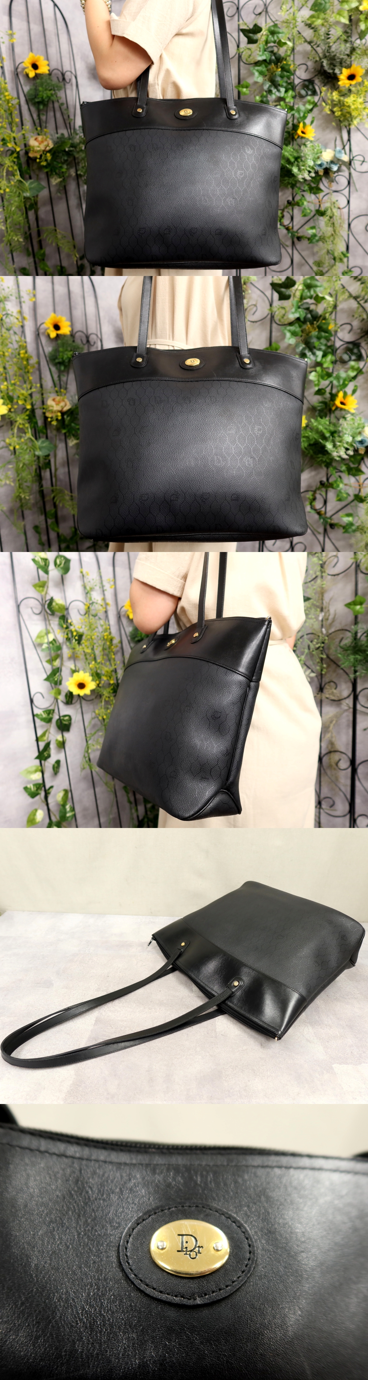 ●超美品●クリスチャン・ディオール●ハニカム柄●PVC カーフ レザー 本革●トート バッグ●黒●G金具●ヴィンテージ●A4 かばん●Js57991 收藏