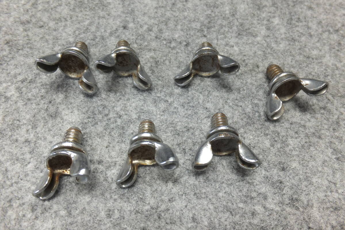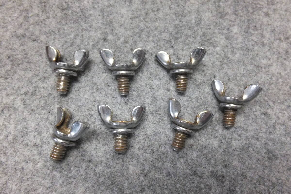 1956-1979 コルベット イグニッションシールド ウイングボルト CORVETTE 7個セット USED 錆汚れ有、画像でご確認ください。アメリカからの輸入品にご理解のある方、ノークレーム、ノーリターン、発送まで少々お時間をいただく場合がございます。