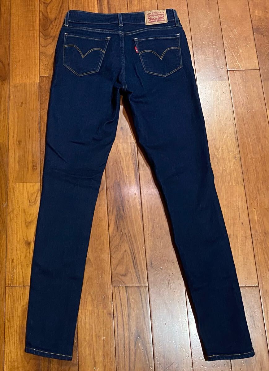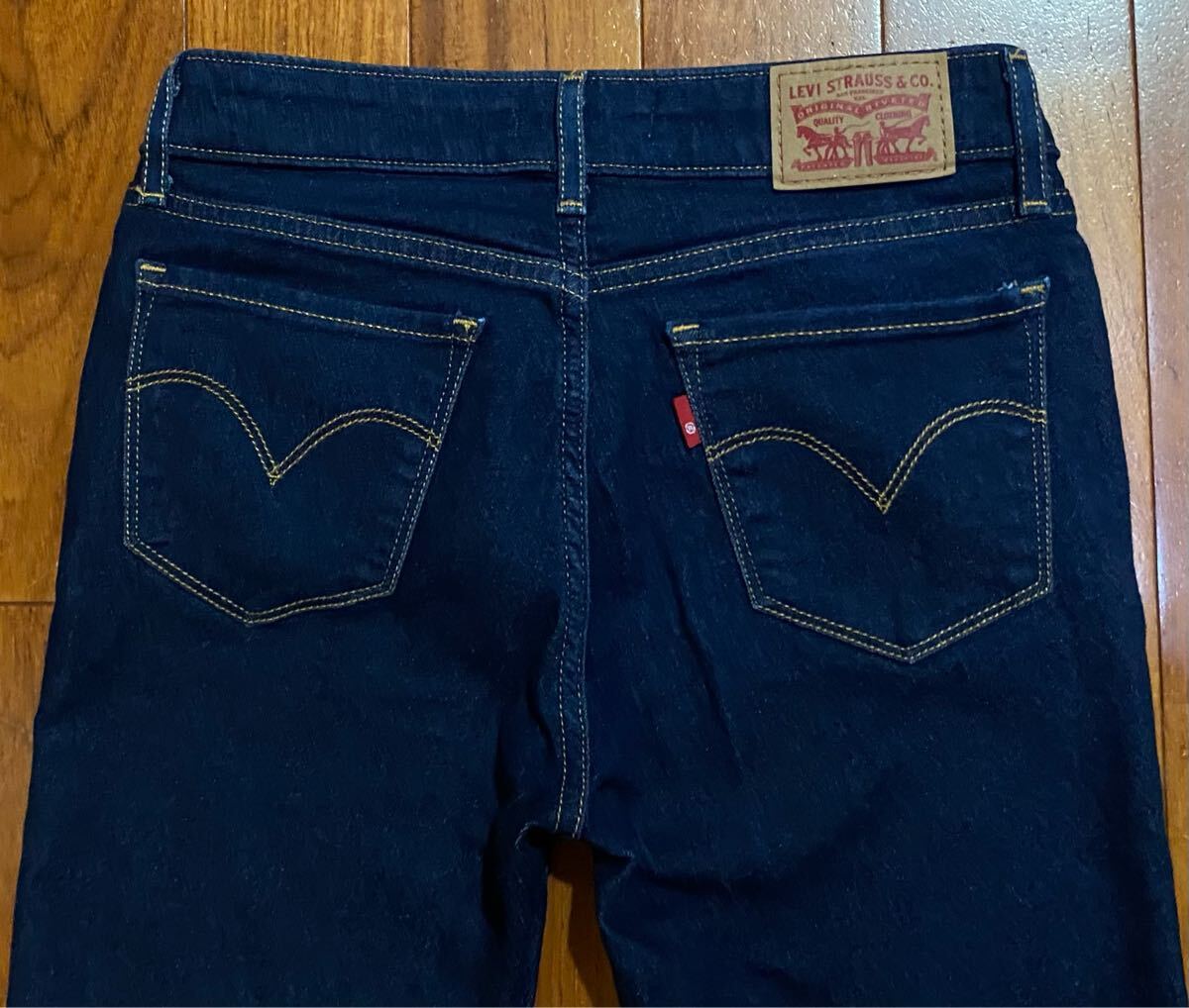 リーバイスのストレッチスキニーデニム(ジーンズ)、711 SKINNY 18881-0012です。色はインディゴブルーです。USEDですが状態は良いです(10段階中8程度)。生地はストレッチ入りで綿80%、ポリエステル19%、ポリウレタン1%です。紙パッチ、ジッパーフライ、裾はチェーンステッチです。正規品です(パキスタン製)。サイズはW25×L30でウエストは重ねずに平置きで約69cm、ヒップ約85cm、股上約21cm、股下約75cm、股下15cmのふともも部分約42cm、裾まわり約24cm、重量約410gです。発送はゆうパケットポストになります。