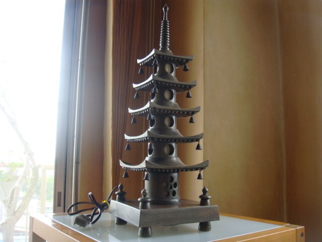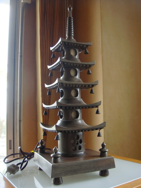 ◆ 五重塔 照明 ランプ 木製 高さ50cm 昭和レトロ 卓上 和風 置物 五重の塔 工芸品 和室や茶室にいかが 古民家 店舗什器 世田谷発送 引取可 收藏