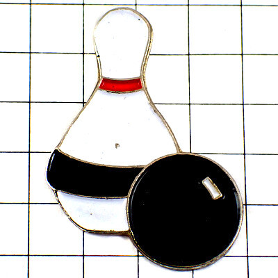 ピンバッジ・ボウリングのピン1本と黒い球◆フランス限定ピンズ◆レアなヴィンテージものピンバッチ 收藏