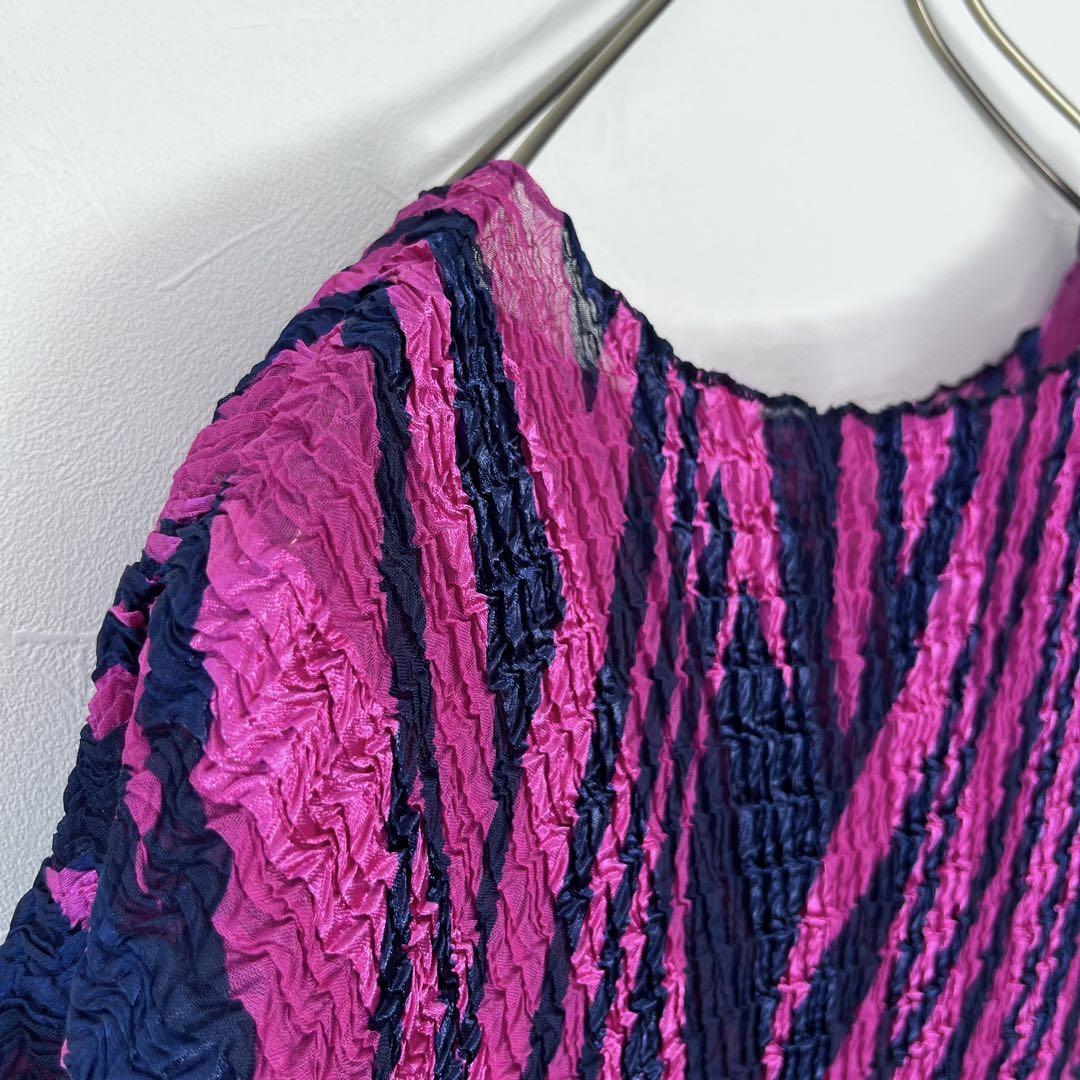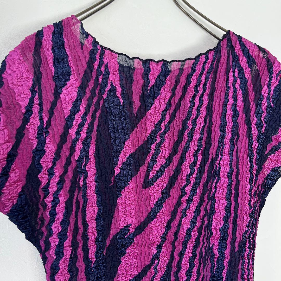古着 シャーリングカットソー アート 派手柄 フレンチスリーブ ピンク サテン 個性的 紺 ネイビー レトロ アシンメトリー 衣装 ダンス 收藏
