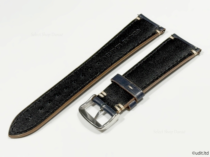 ラグ幅24mm 本革 腕時計レザーベルト ネイビー シルバー尾錠 腕時計ベルト 時計用バンド ワンタッチばね棒 LB103 收藏