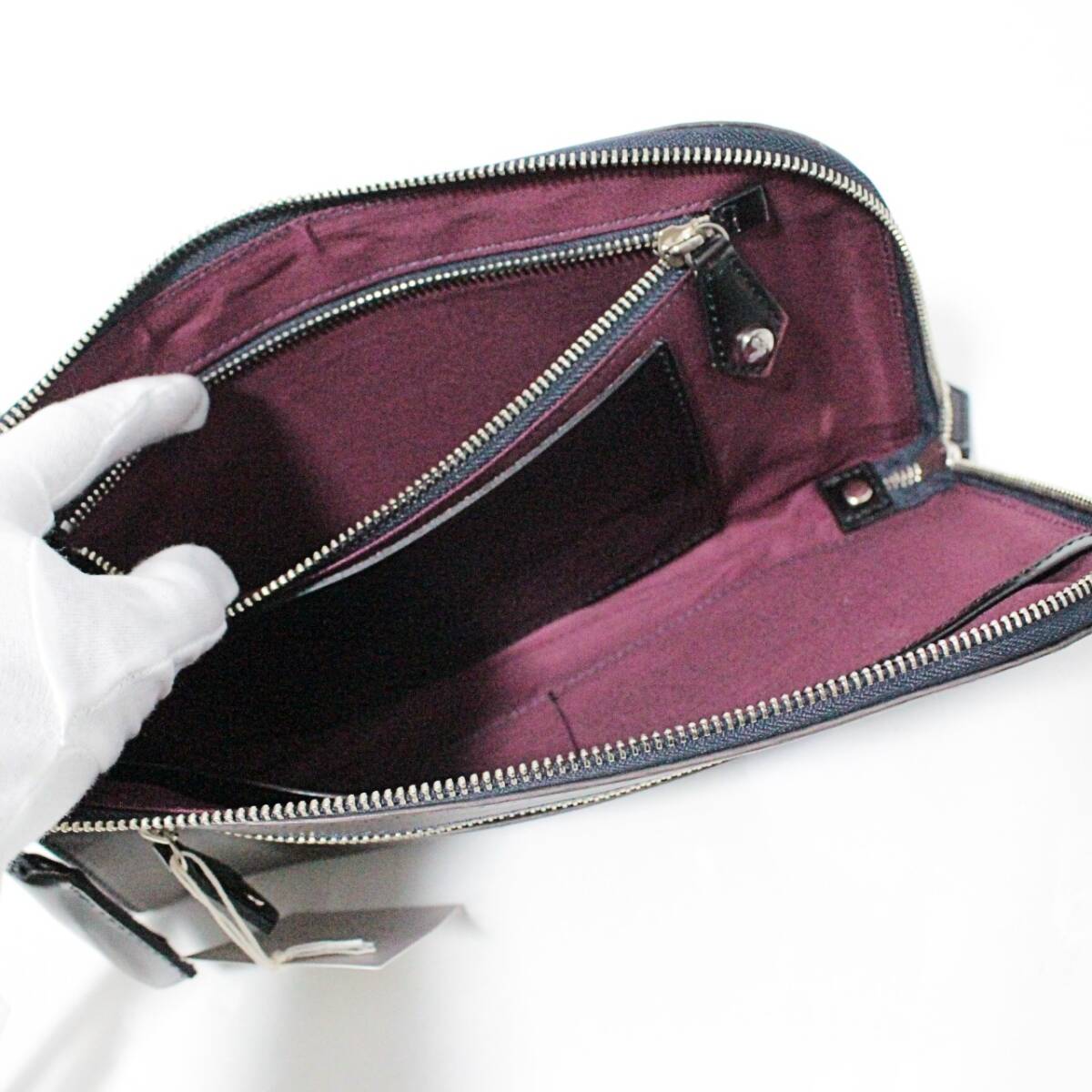 新品 ヴィヴィアンウエストウッド チャーム付 アドヴァン染色 レザークラッチバッグ 紺 K5397 收藏