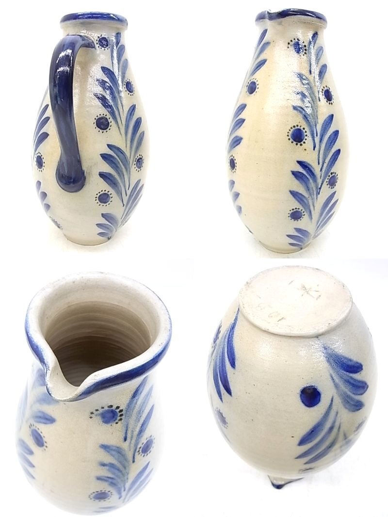 e09790 ドイツ製 手書き コバルトブルー 塩釉陶器 コップ ピッチャー 水差し セット 收藏