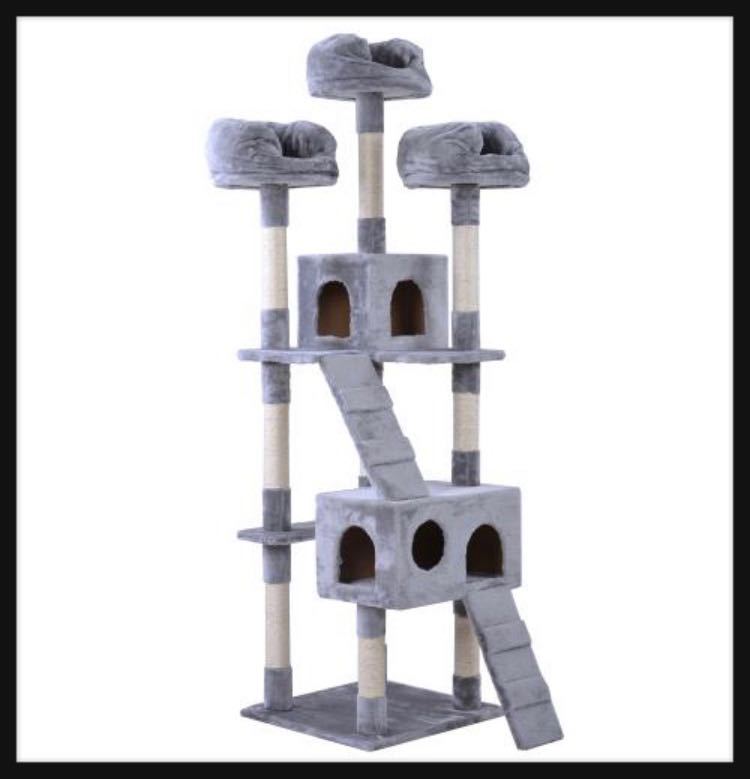 キャットタワー 据え置き 高さ185cm グレー 猫タワー 猫用品 ペット用品 收藏