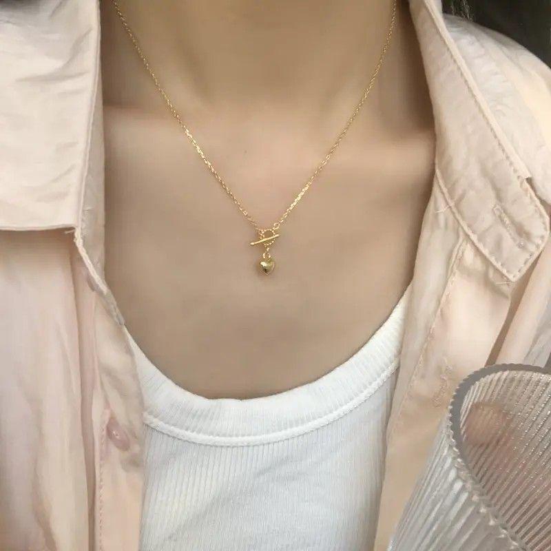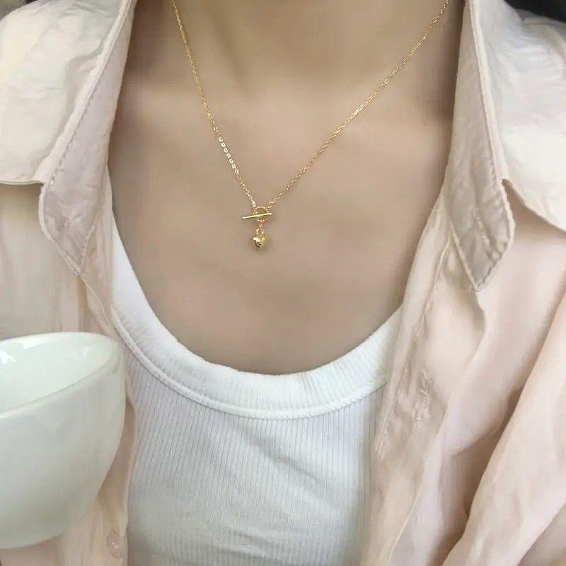 925スターリングシルバー ゴールド ハートペンダントネックレス 收藏