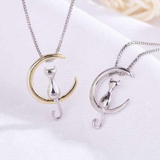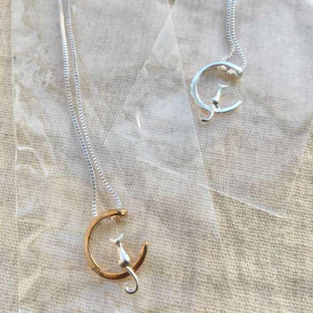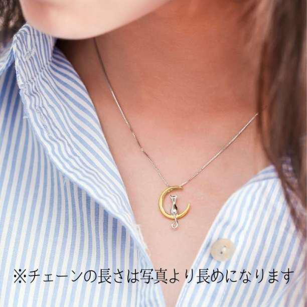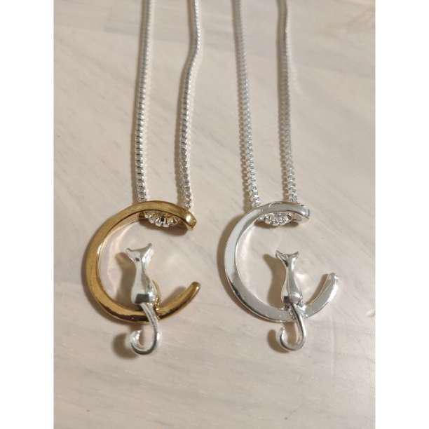 猫ネックレス ゴールド 三日月に佇む猫 猫好きさんに♪ 猫グッズ ギフト 色違い 收藏