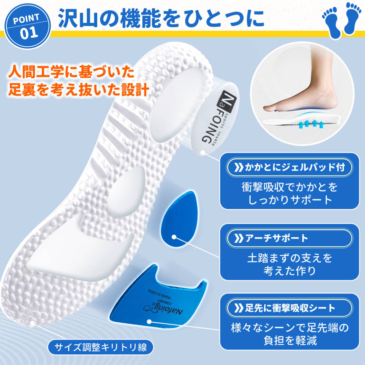 インソール 衝撃吸収 中敷き ブラック 24cm アーチサポート 土踏まずサポート 疲れない 偏平足 消臭 防臭 通気性 快適 收藏
