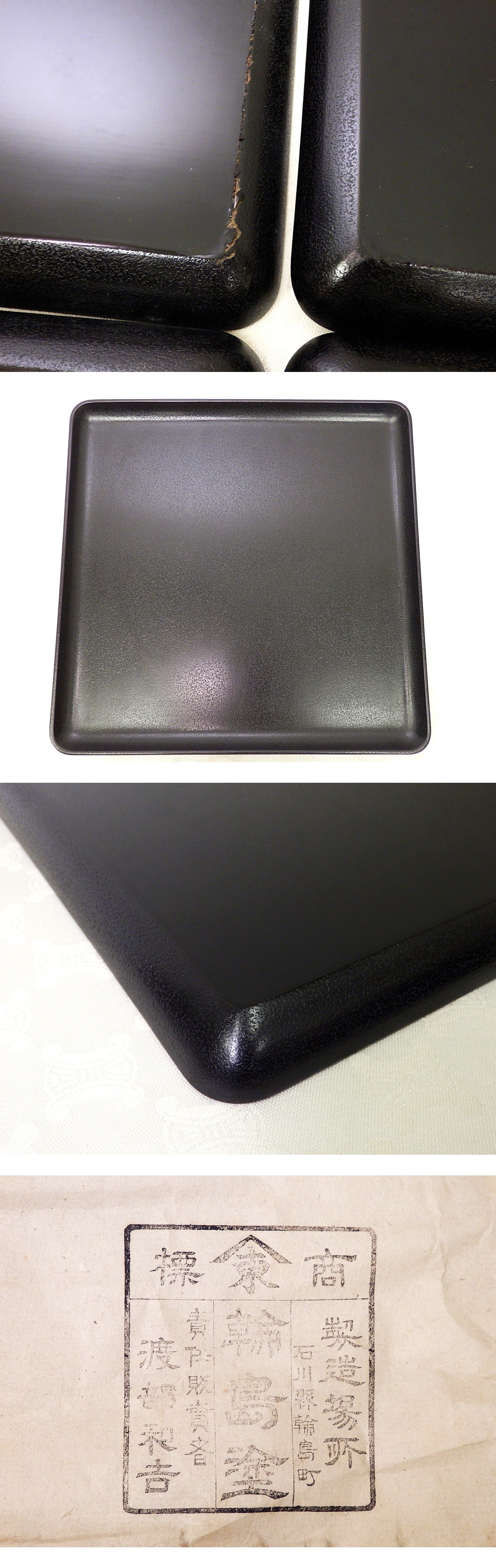 7528 ☆ 能登 輪島塗 角盆十客 33.5㎝ 渡部和吉 塗物 漆芸 木乾漆器 漆器 和食器 伝統工芸 盆 アンティーク レトロ 收藏