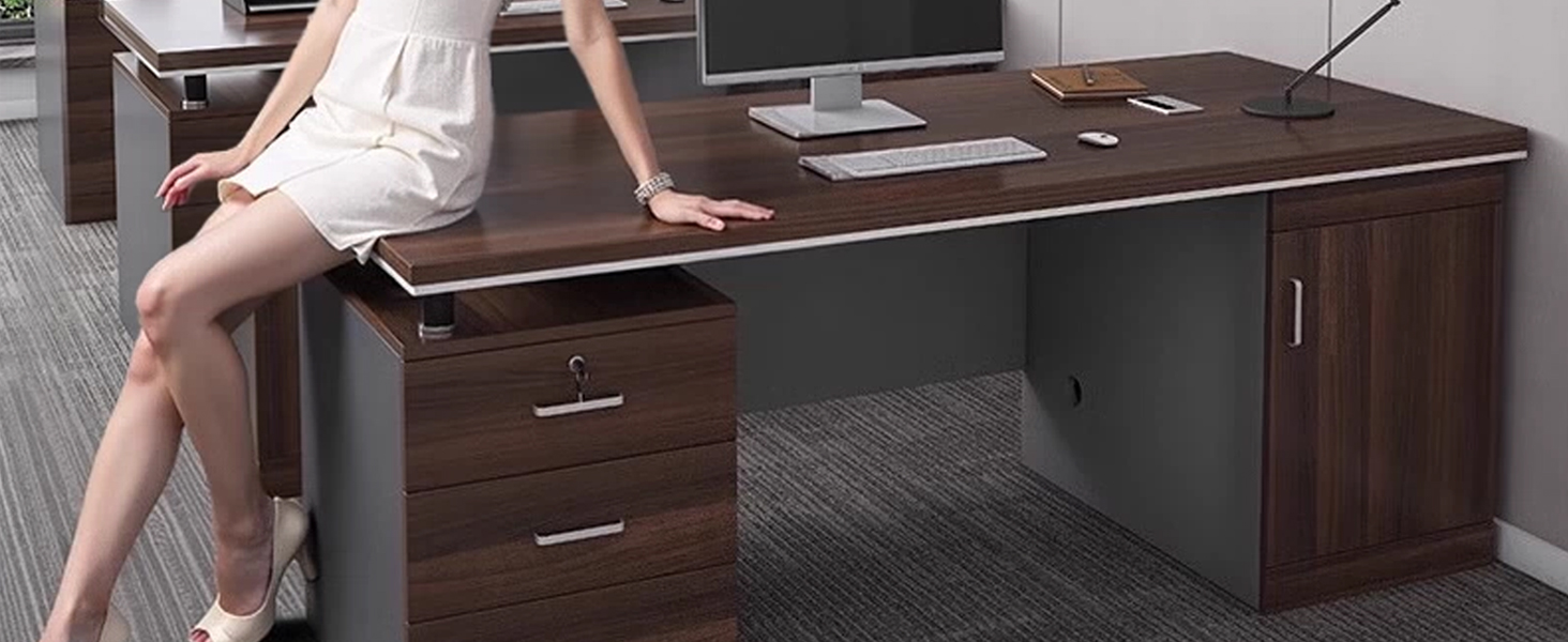 【優れた耐荷重性と安定性】法人様向け 社長デスク 25mmの厚みのあるパネル、H型構造、金属製の円筒形接続部により、揺れや変形に強く、優れた耐荷重性とスムーズな書き心地を実現。高品質で耐久性があり、圧力にも容易に耐えられるため、安定性と信頼性に優れています。