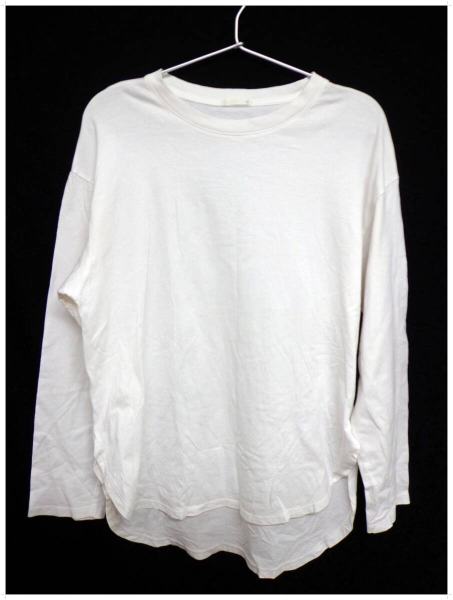 ★1411 【送料無料】 GU ジーユー 長袖 Tシャツ 白 M メンズ 綿100% ラウンドテール 伸縮性◎ シンプル カジュアル ベーシック 普段着 收藏
