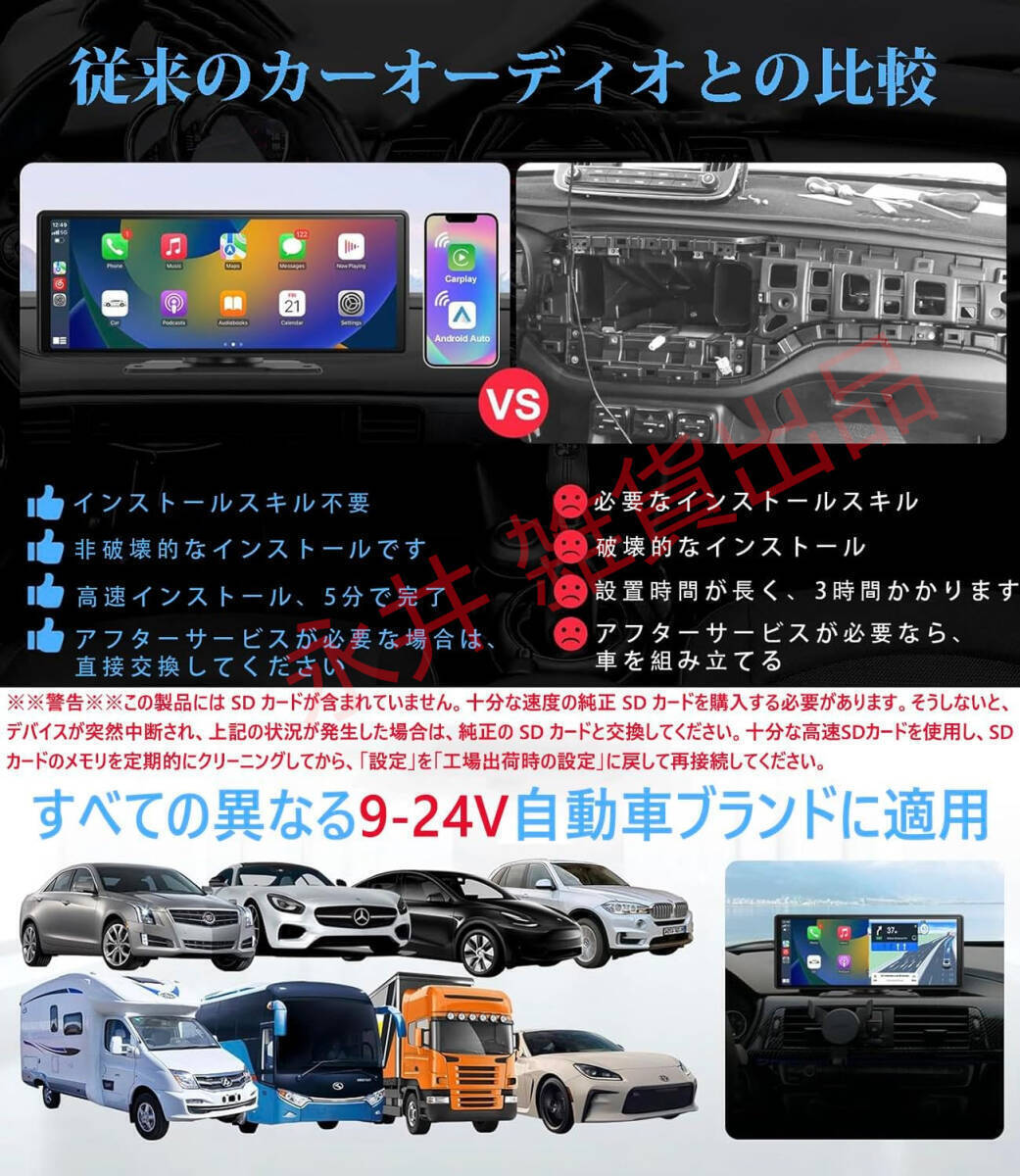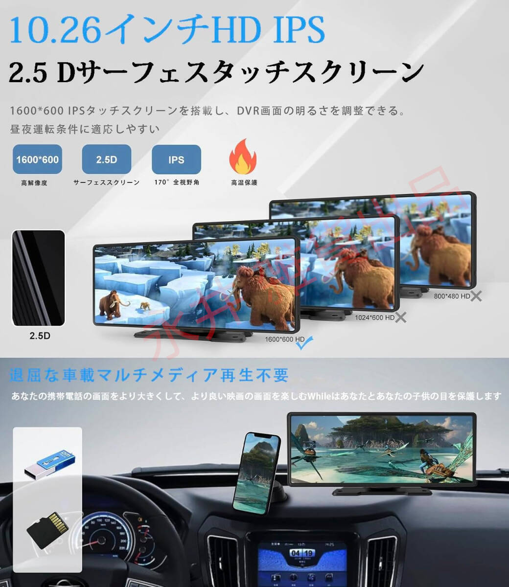 オンダッシュモニター 10.26インチ 大画面 日本語 Carplay Android Autoミラーリング対応 音声アシスタント AUX、FM、Bluetooth対応 GPS 收藏