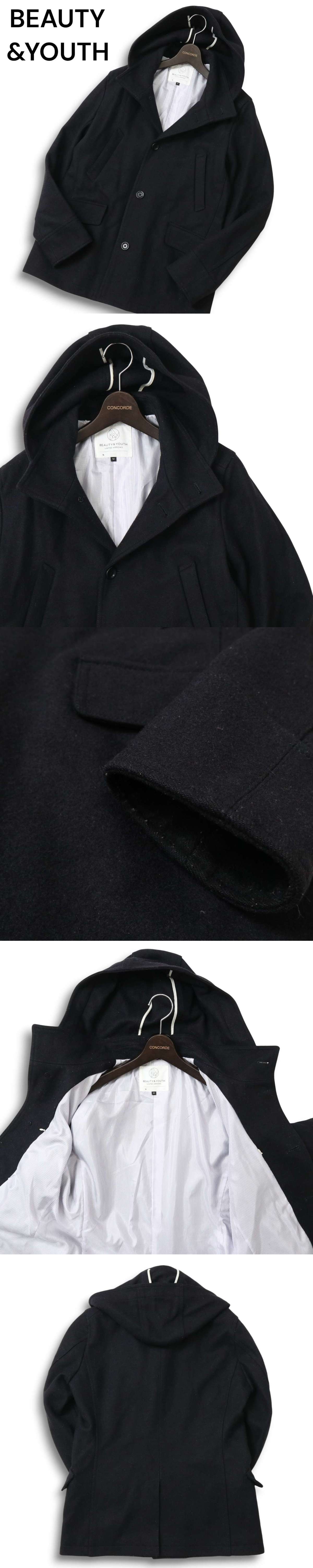 BEAUTY&YOUTH ユナイテッドアローズ 秋冬★ メルトン ウール フーディー コート Sz.M メンズ 紺 ネイビー 收藏
