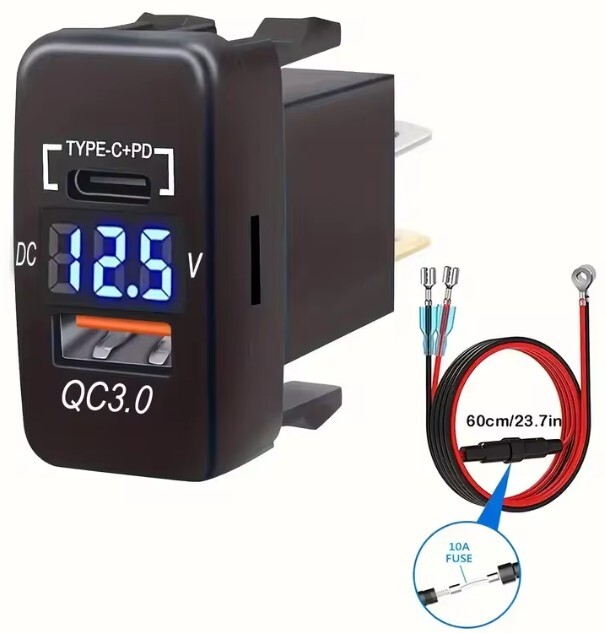 トヨタ・ダイハツ車用2ポート充電器 車載QC3.0 + PD Type-C 車載急速充電 USBポート カーチャージャー 増設電源 スマホ充電 TOYOTA Bタイプ 收藏