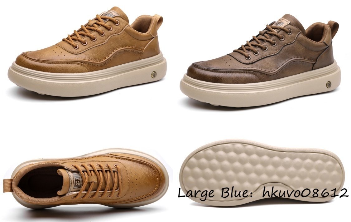 超美品★牛革 スニーカー メンズ レザーシューズ 身長アップ 通気性 ドライビングシューズ 運動靴 ウォーキング 滑り止め ブラウン 25.5cm 收藏