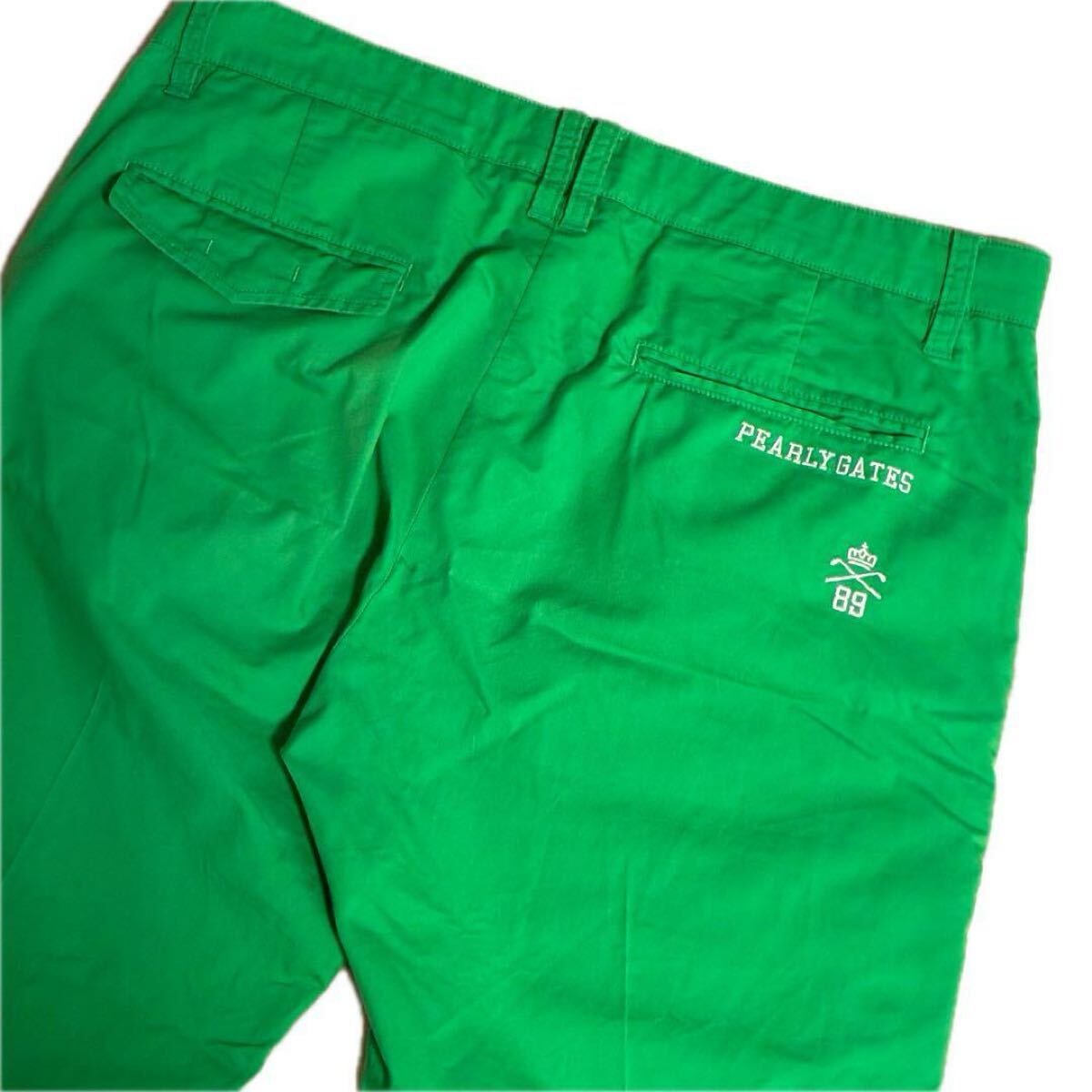 良品 パーリーゲイツ 希少XL サイズ6 コットン ストレッチ パンツ ロゴ刺繍 グリーン ゴルフウェアPEARLYGATES メンズ 收藏