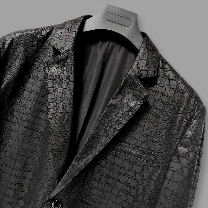 イタリア ワニ柄 羊革 テーラードジャケット メンズ 紳士 本革 レザージャケット スーツジャケット ブレザー 黒/A1579-2XL程度 收藏