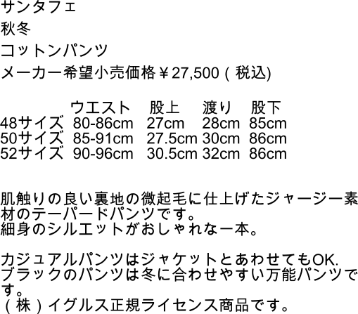 テーパードパンツ サンタフェ 50サイズ 62130-19 2021AW santafe 30代 40代 50代 60代 本物 正規品 メンズ カジュアル ブラック 收藏