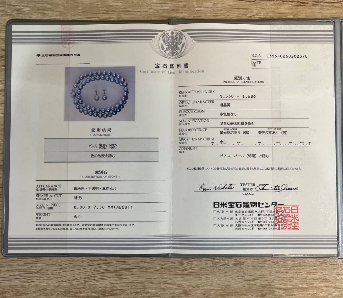 日米宝石鑑別センター パール 真珠 ネックレス 7.5-8.0mm K14WG留め具ピアス 鑑別書付き 現品限り 現状お渡し 收藏