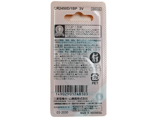 リチウム コイン電池 3V CR2450 D 三菱 49K035 メール便 送料無料 收藏