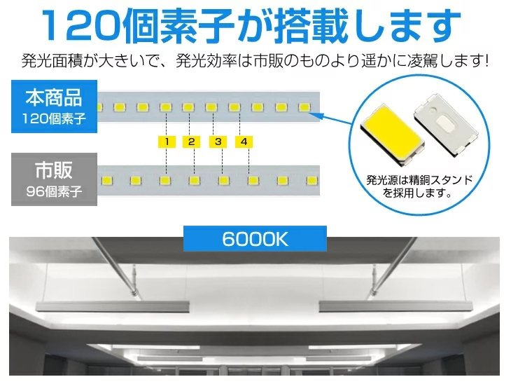 即納!50本セット LED蛍光灯 40W形 T8 直管 120cm 昼光色6000K 2500LM 120個LED素子 G13口金 LEDライト 消費電力18W グロー式工事不要 D02 收藏