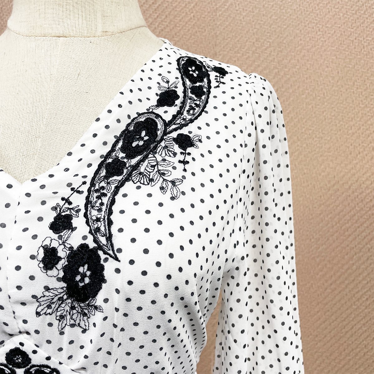 上品ヨーロッパ製※定価5万◆ブルガリア発※RISELIN ワンピース 通気 柔らか 裏地付き ドット柄 刺繍 エレガント ドレス レディース 夏 M 收藏