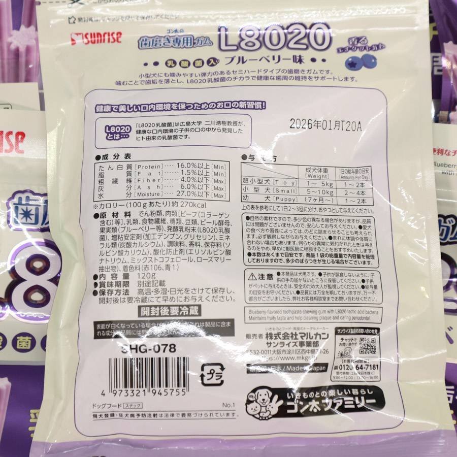 【8パックセット】ゴン太の歯磨き専用 ガムSSサイズ L8020乳酸菌入り ブルーベリー味 120g 犬用 賞味期限2026/01 まとめ売り◆273f07 收藏