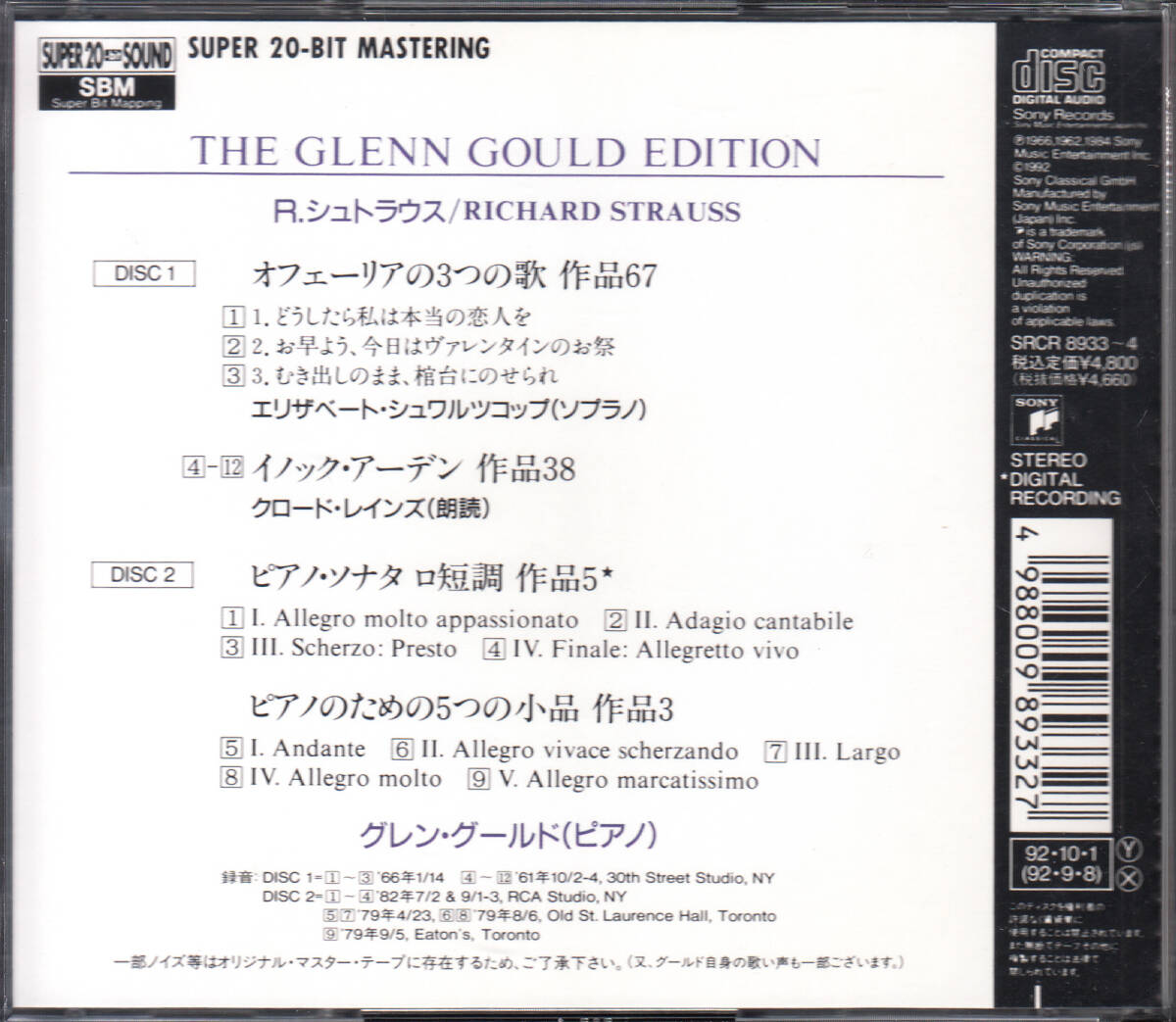◆送料無料◆リヒャルト・シュトラウス:ピアノ作品集/オフェーリアの3つの歌、ピアノ・ソナタ、5つの小品~グレン・グールド 2枚組 c3872 收藏