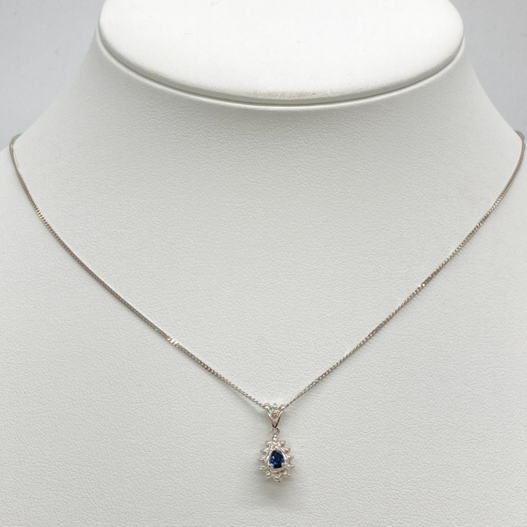 こちらは、上質なプラチナを使用した、天然サファイアと天然ダイヤモンドをあしらったネックレスです。